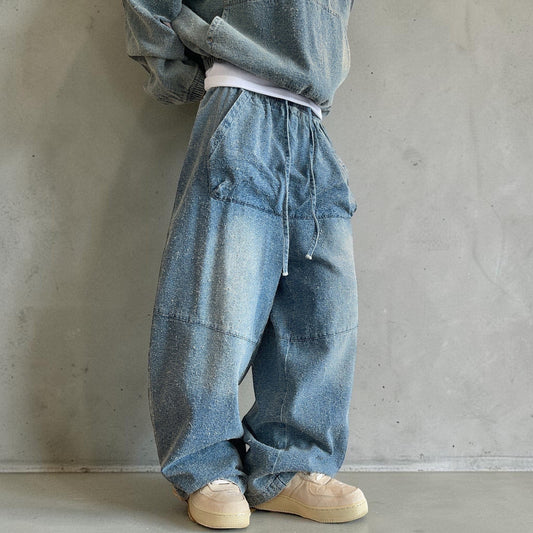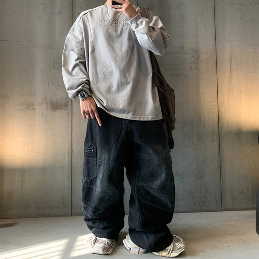 ウォッシュ加工ストレートルーズジーンズ K0525