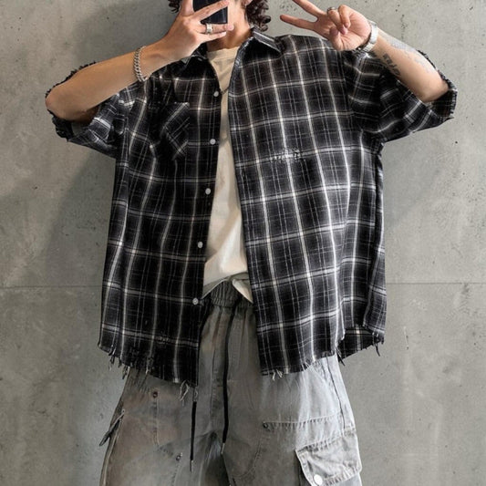 カットオフチェック半袖シャツ K0909