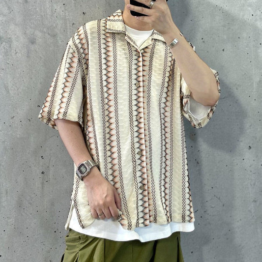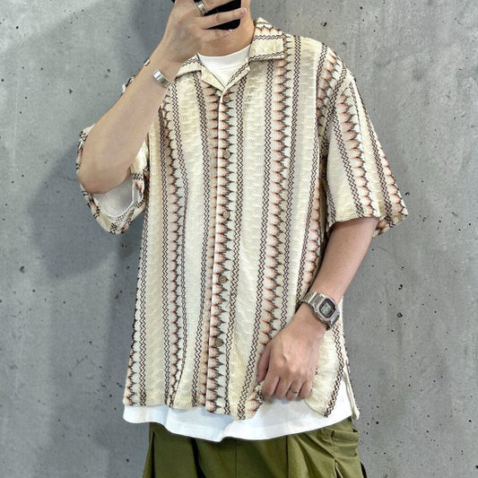 エスニックストライプオープンカラーシャツ K0839