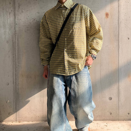 ダメージアクセントウォッシュチェックシャツ K0772