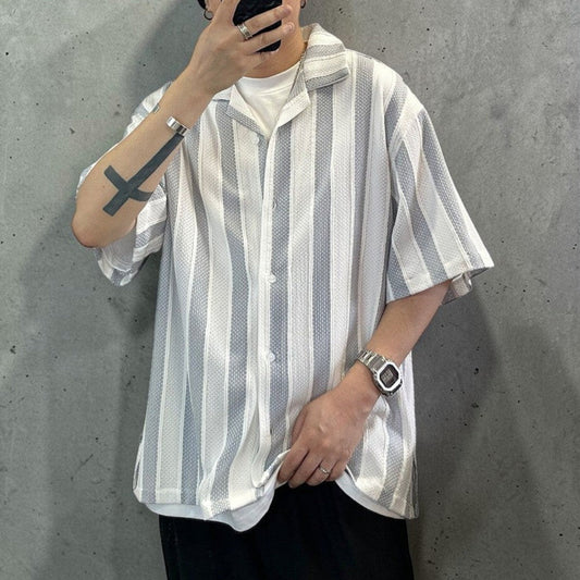 メッシュストライプオープンカラーシャツ K0843