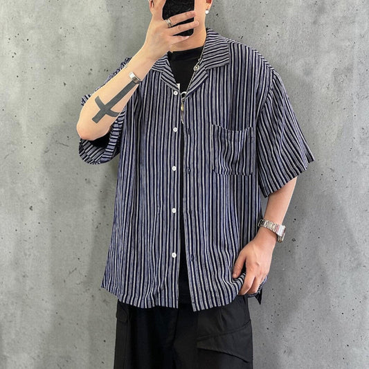 ストライプオープンカラー半袖シャツ K0844