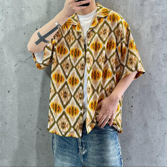 エスニックジオメトリックストライプシャツ K0705