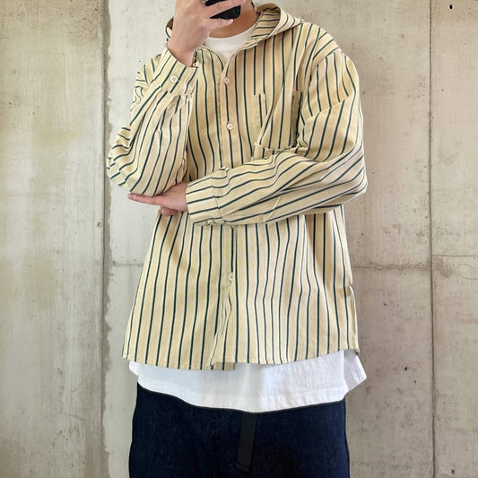 バーティカルストライプフードシャツ K0836