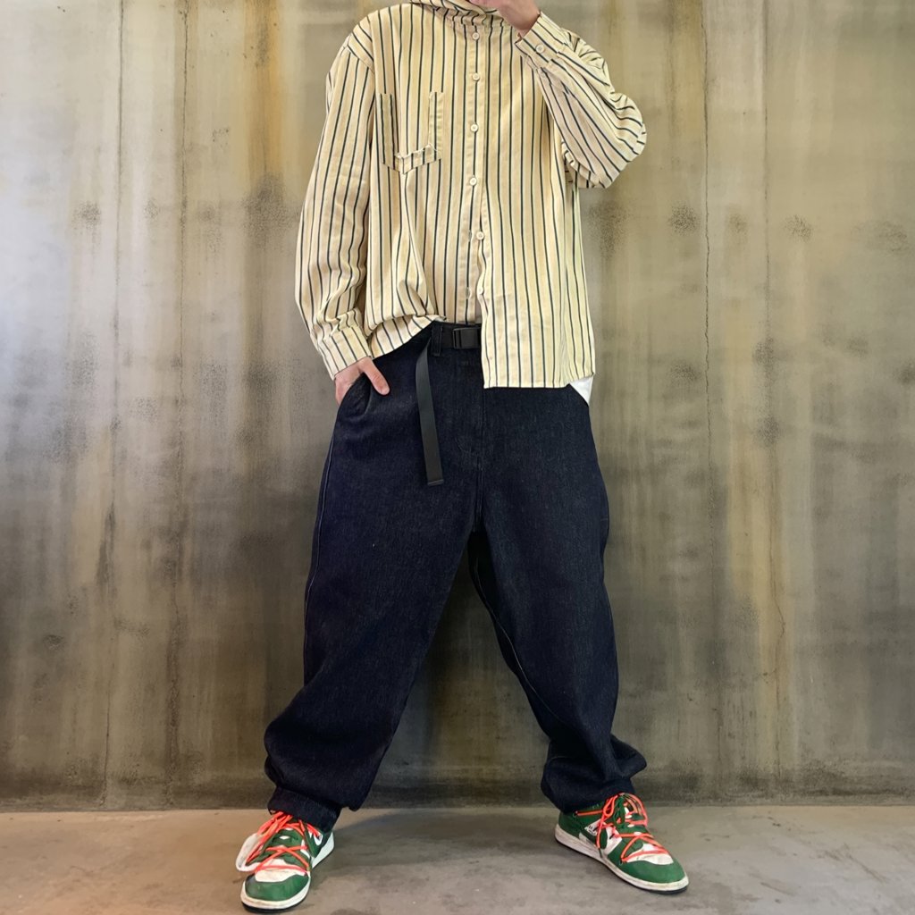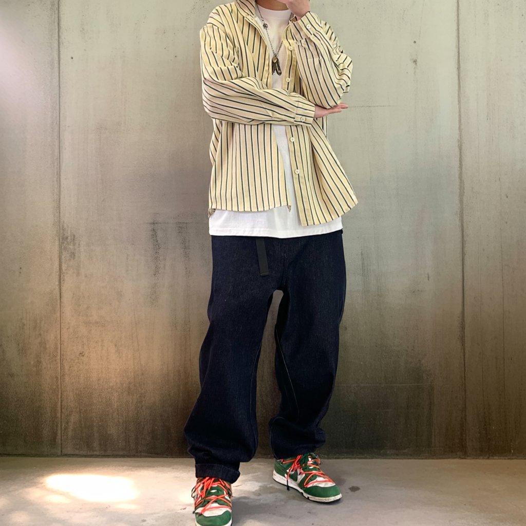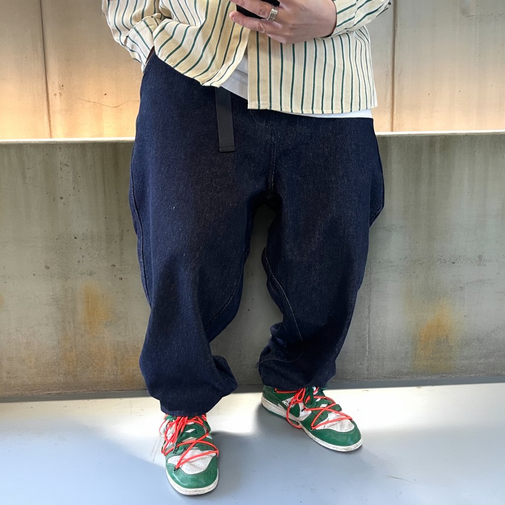 シャツやスウェットと合わせてもバランスが取りやすく、ストリートにも都会的にも馴染む一本です。