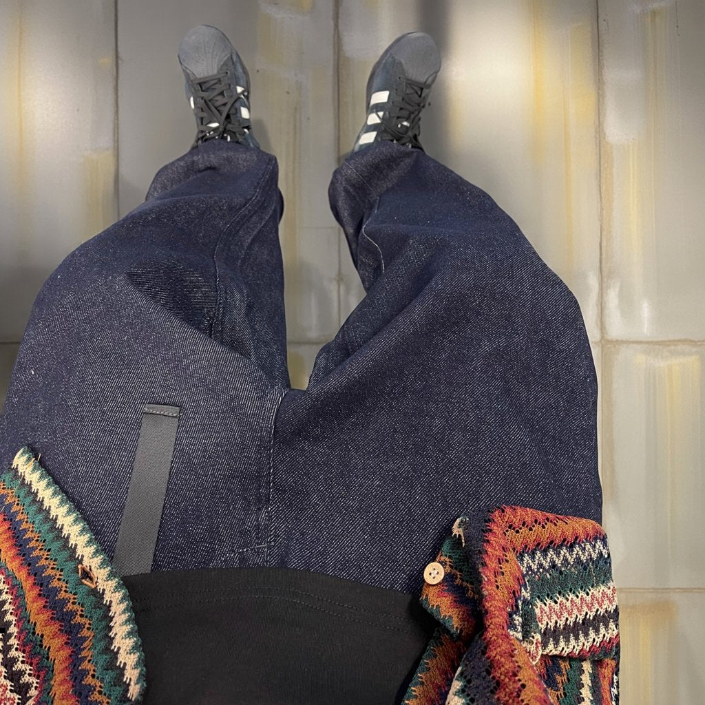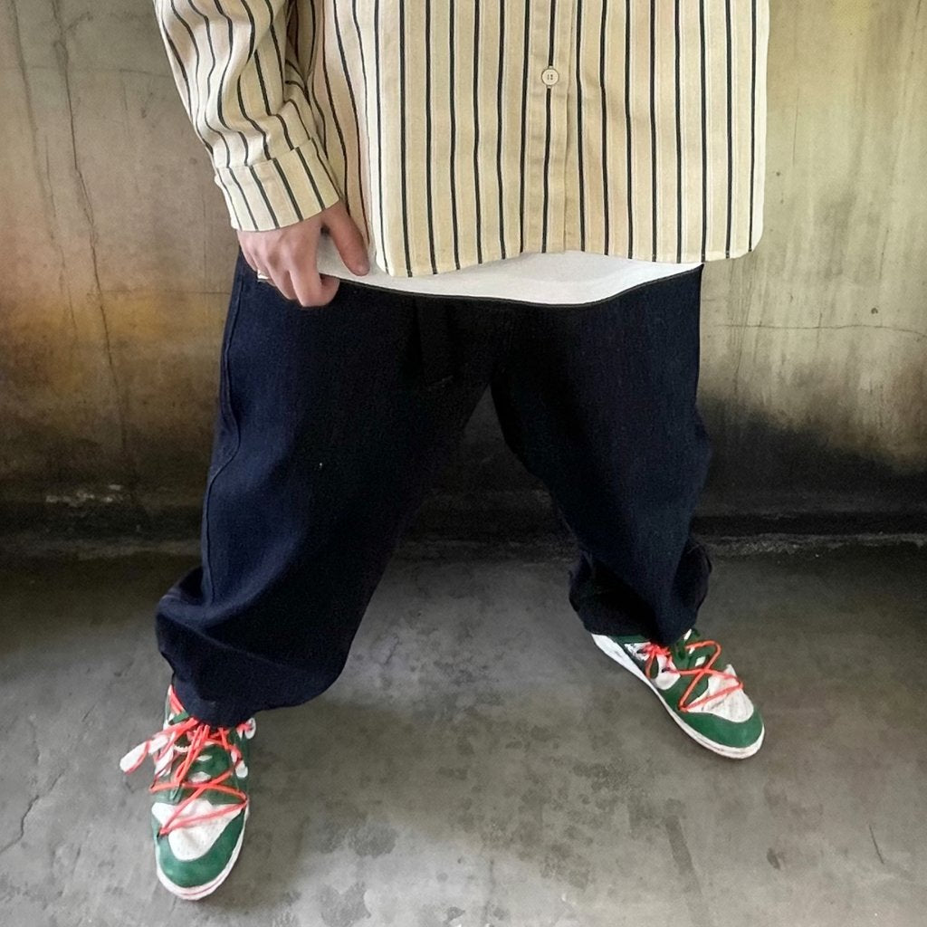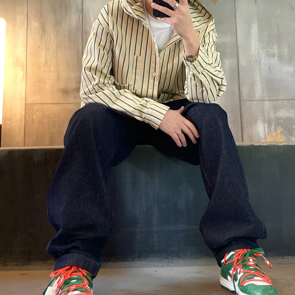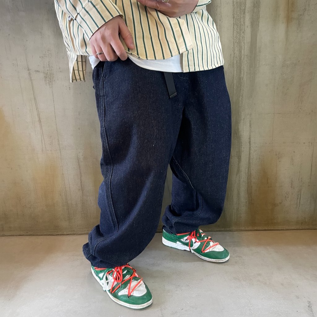 シャツやスウェットと合わせてもバランスが取りやすく、ストリートにも都会的にも馴染む一本です。
