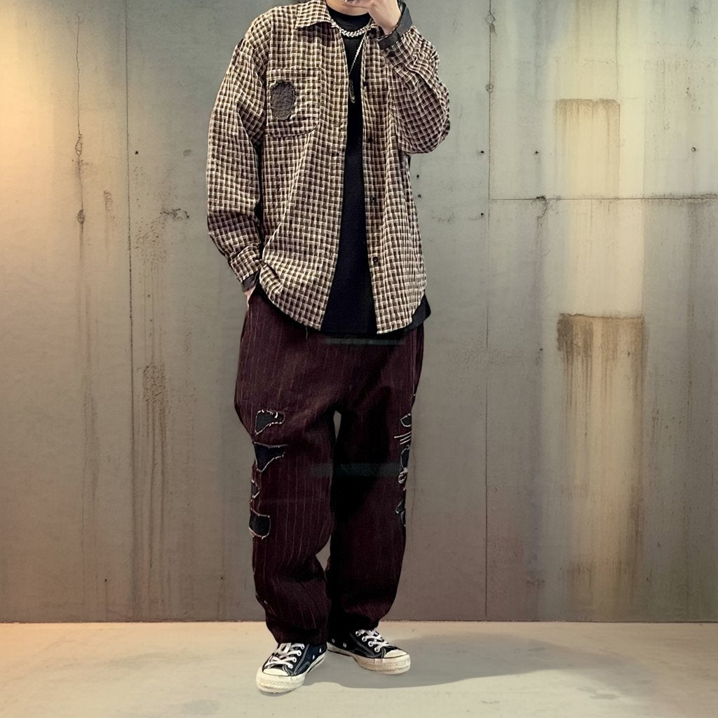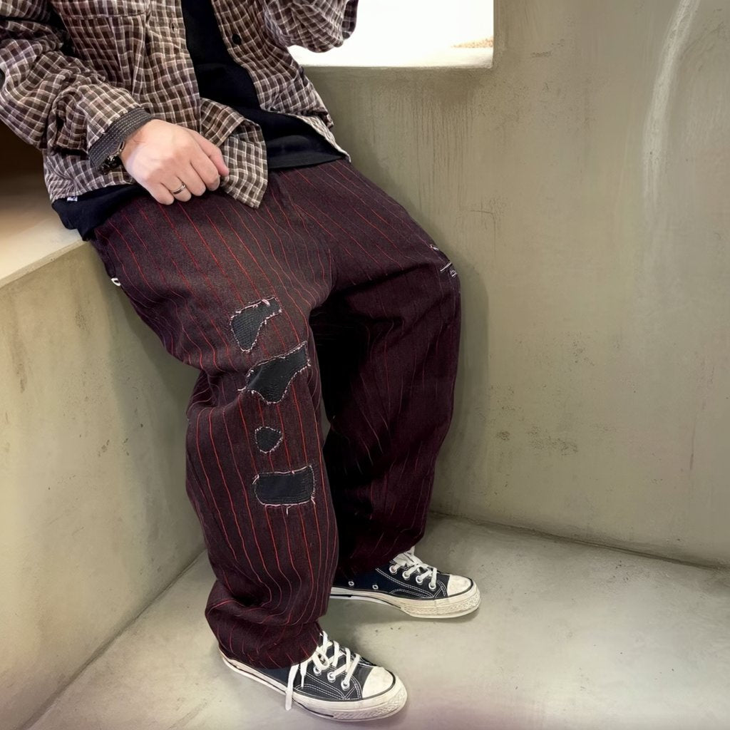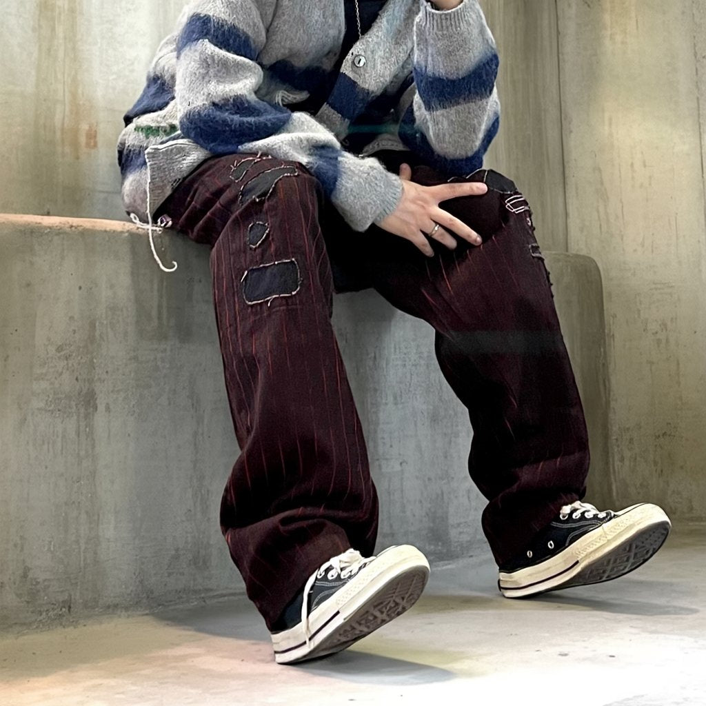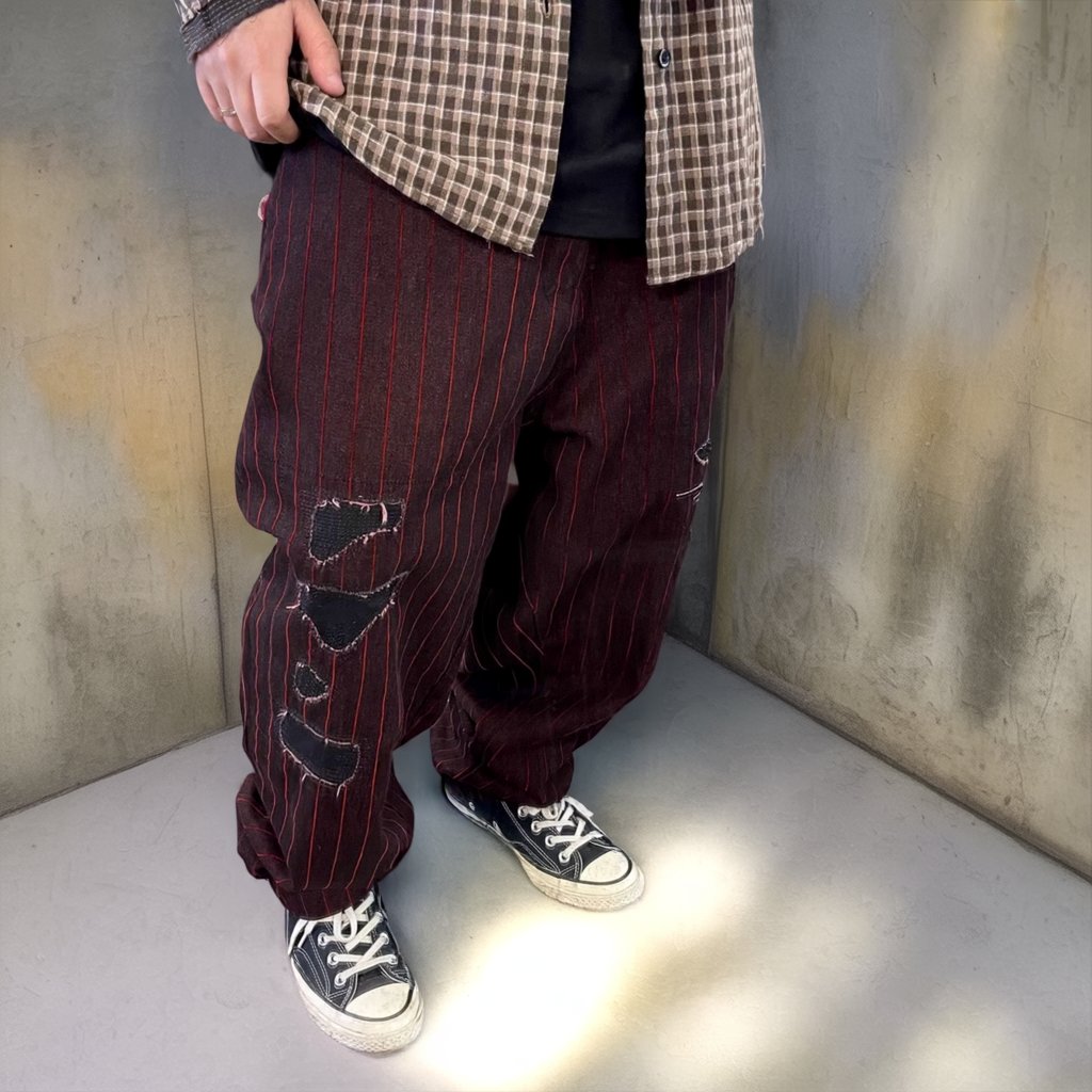 フロックストライプクラッシュパンツ K0616
