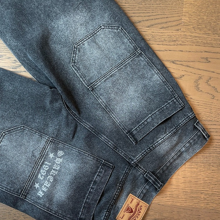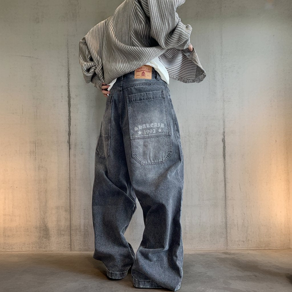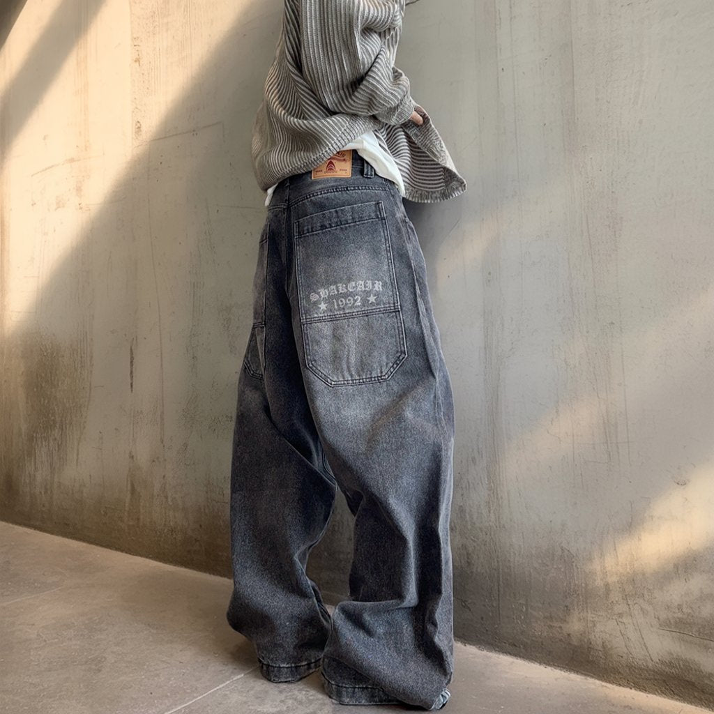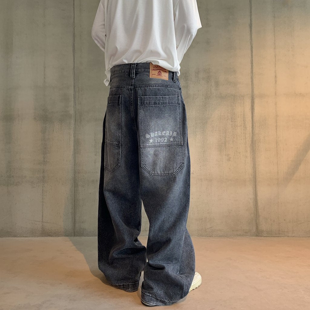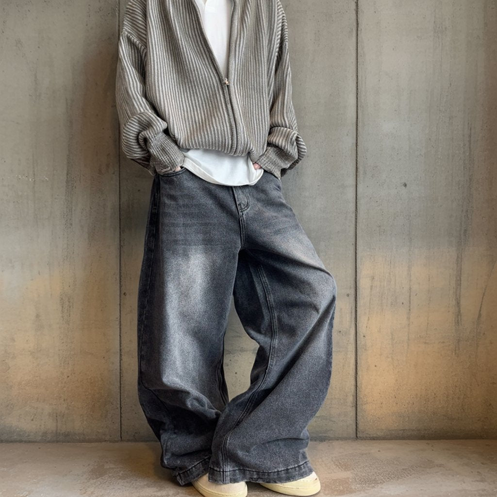 全体に施されたフェード加工が際立つ、存在感のあるワイドデニムパンツ。