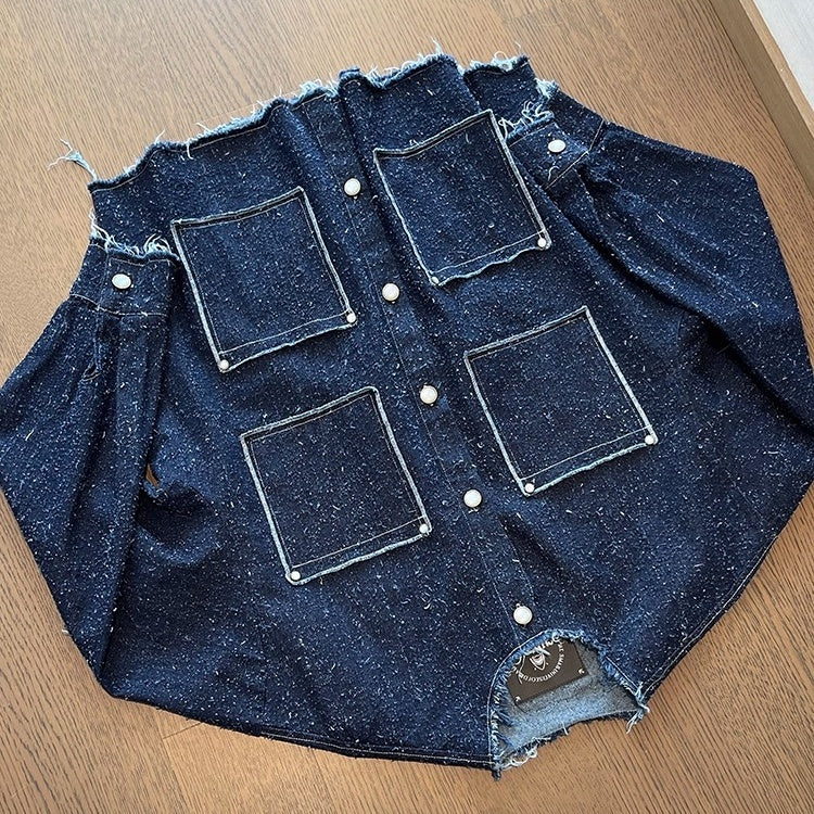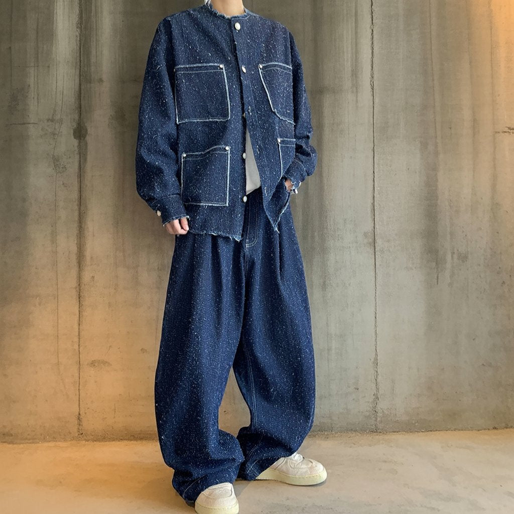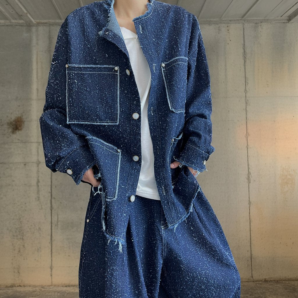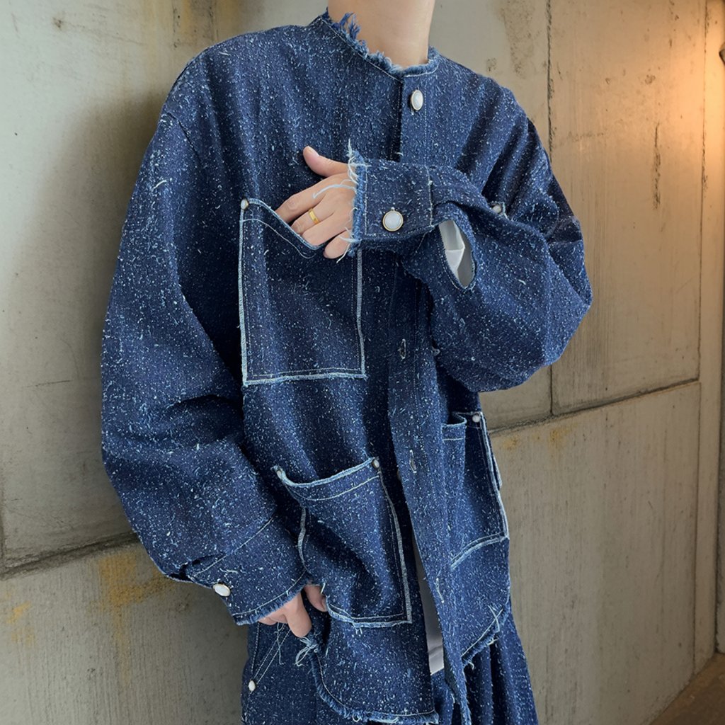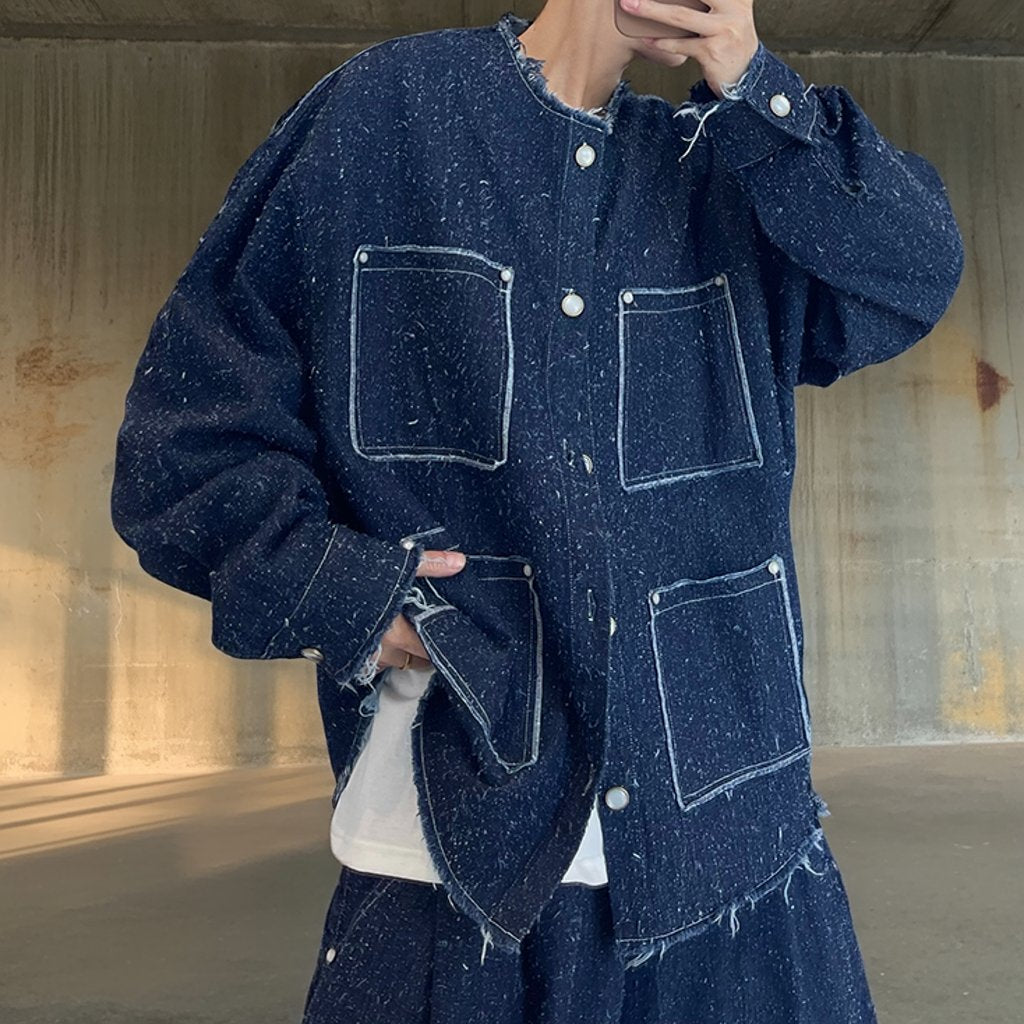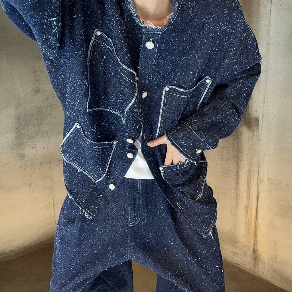 ざらつきのある風合いにスクエアポケットを配置した、存在感あるデニムジャケット。