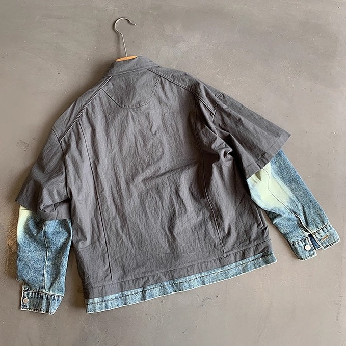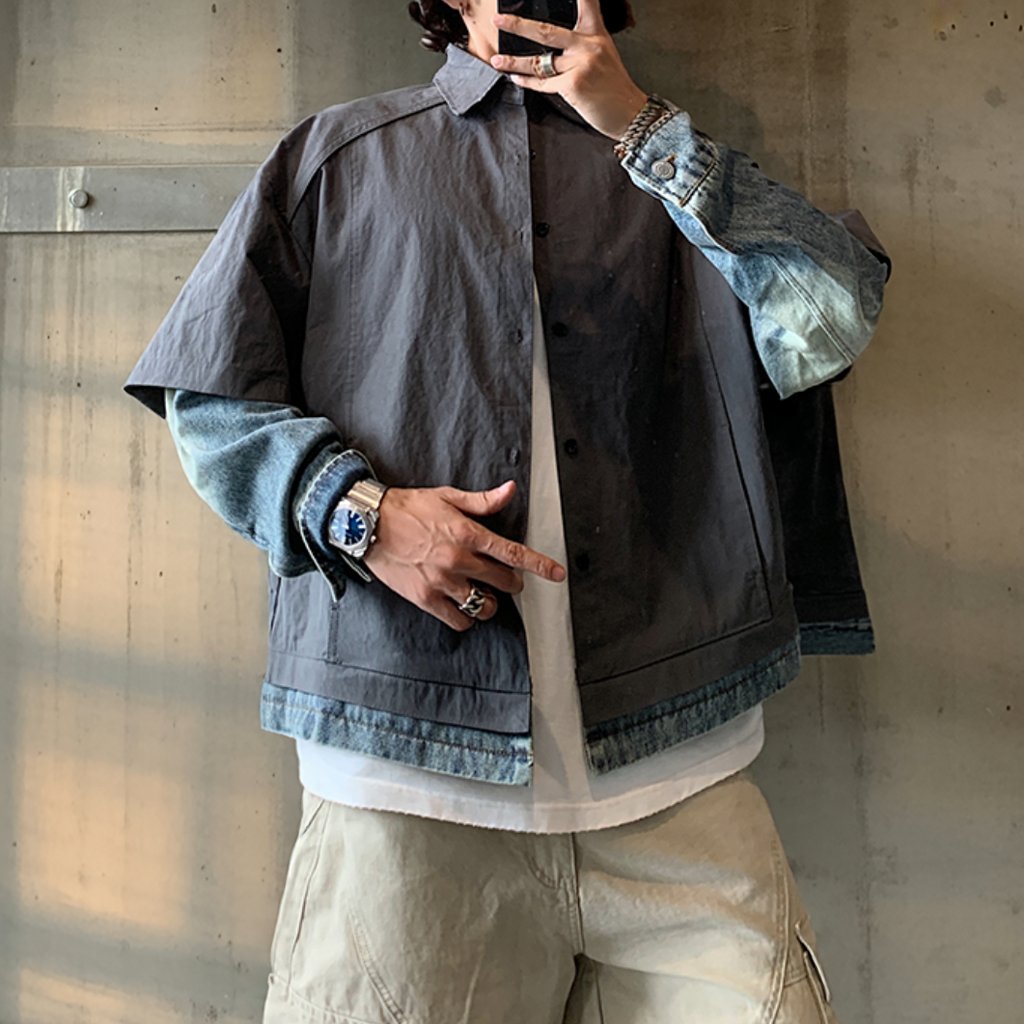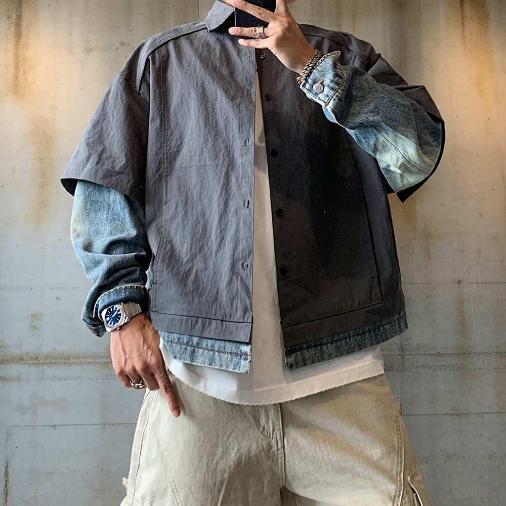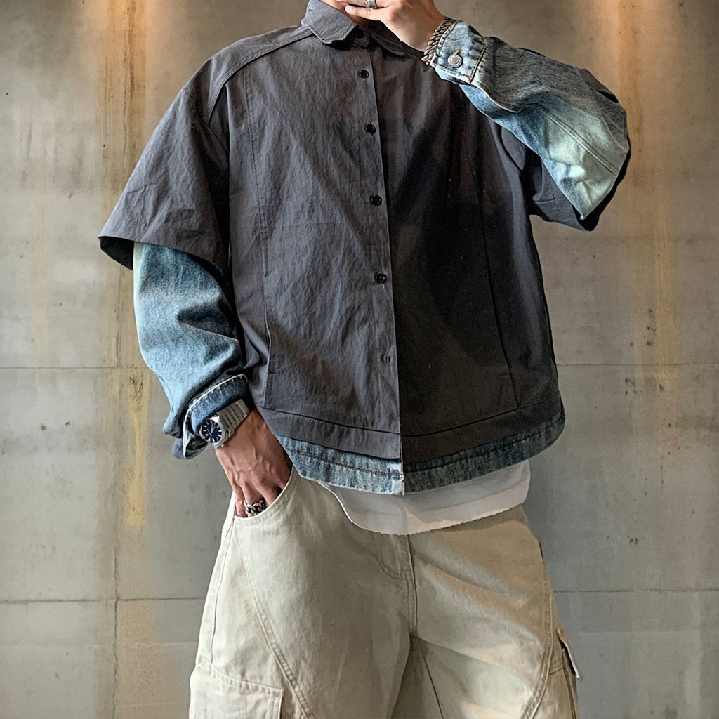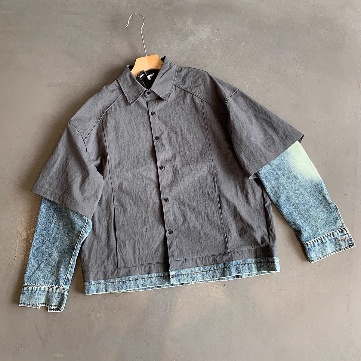 ショートスリーブシャツにデニムスリーブを組み合わせた、レイヤード仕様のジャケットシャツ。