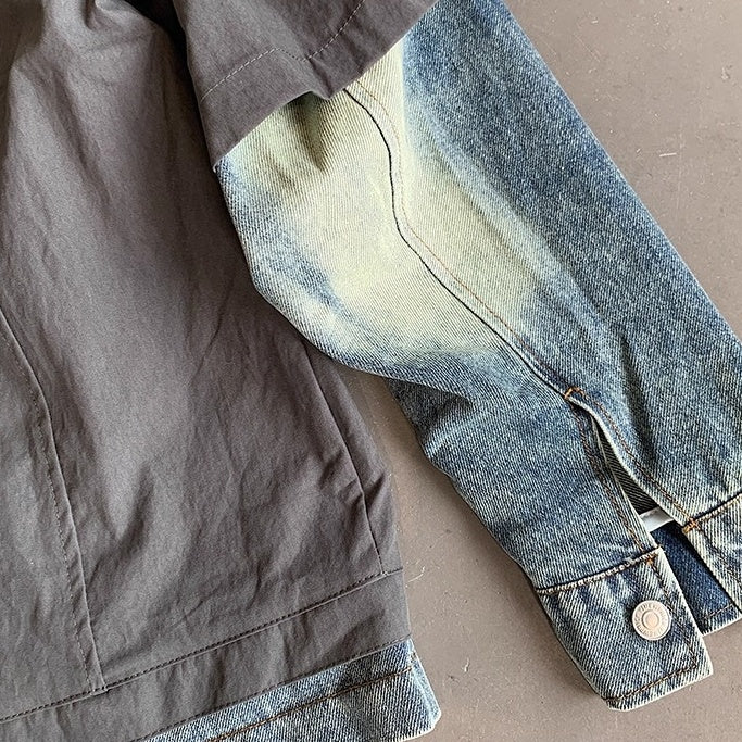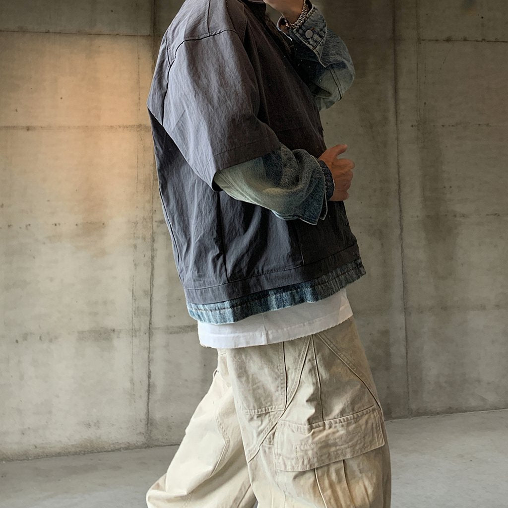 ソリッドなボディと色落ち感のあるデニム袖がコントラストを生み、立体的な存在感を演出します。