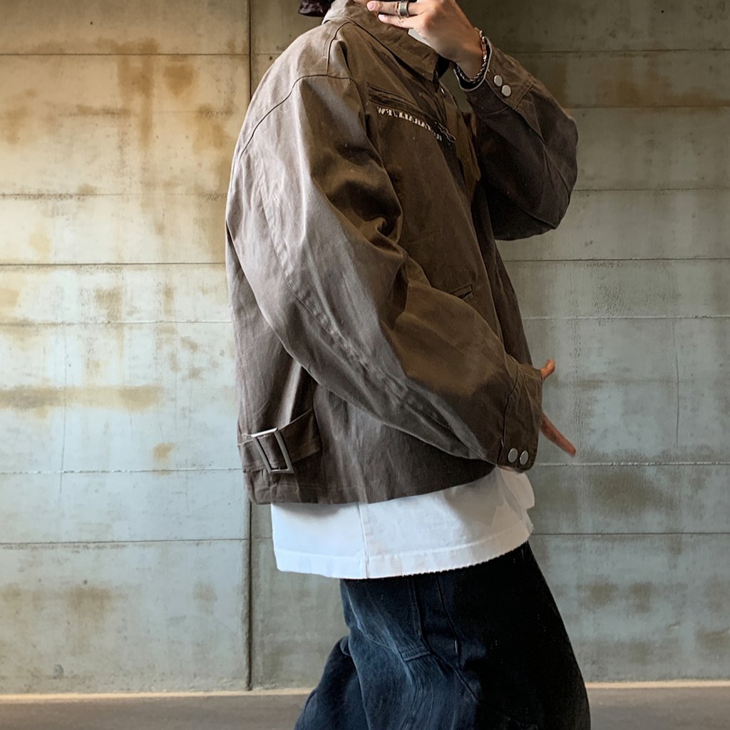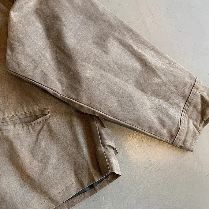 ショート丈のボックスシルエットで仕立てたワークテイストのジャケット。