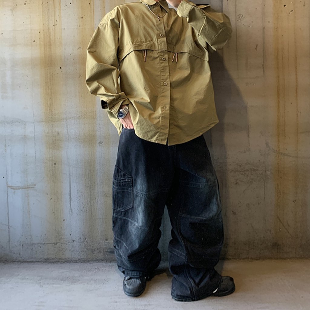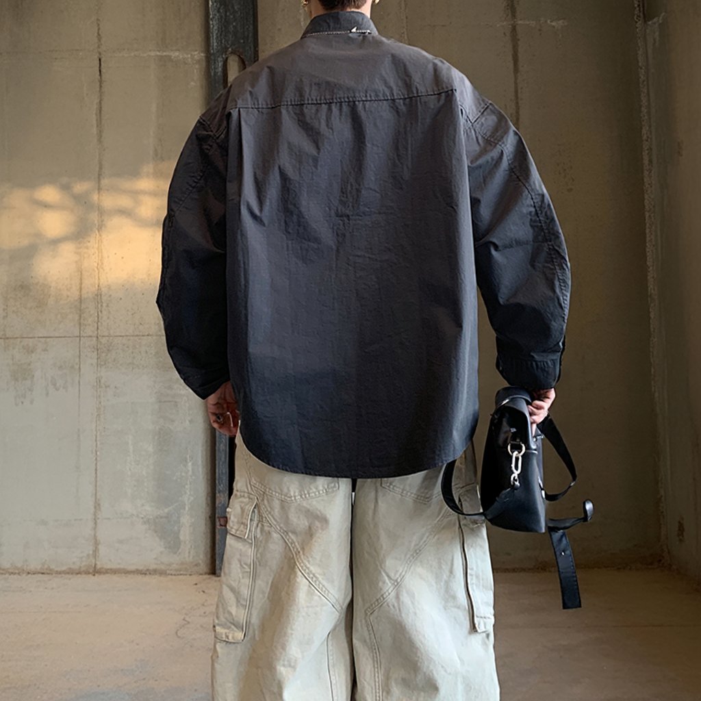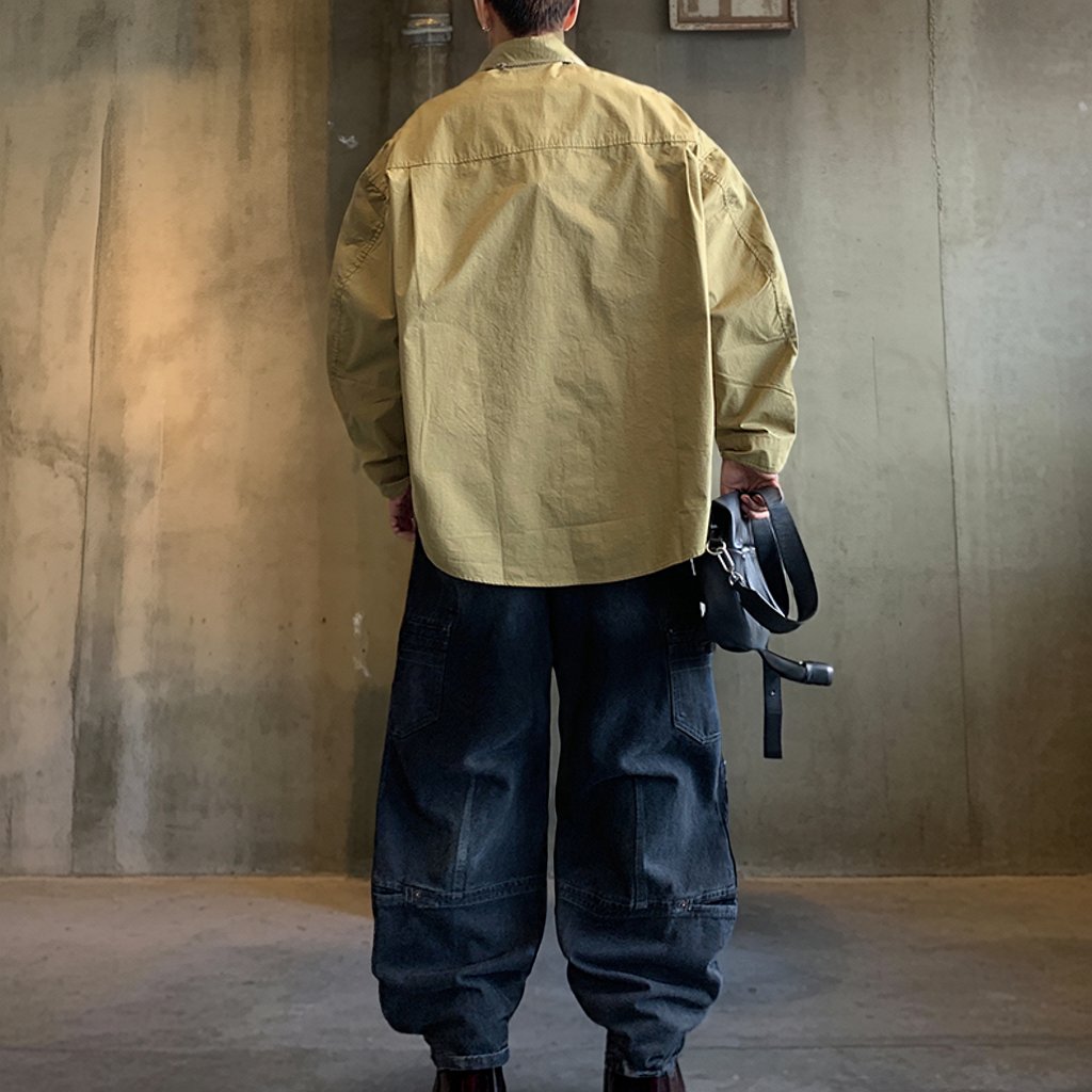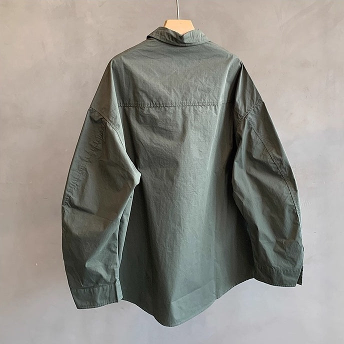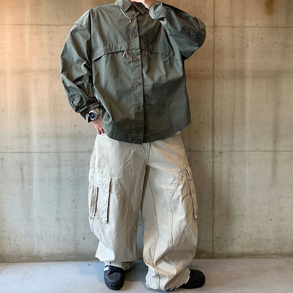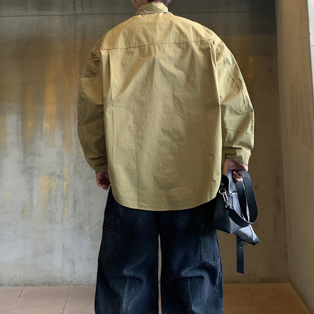 ワイドに落ちるリラックスシルエットで仕立てたミリタリーテイストのシャツ。