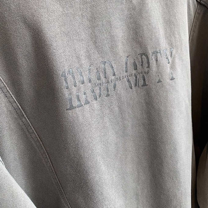 胸元のステンシル風ロゴプリントが控えめに存在感を放ちます。