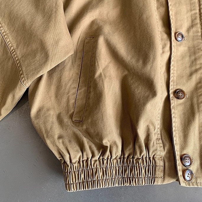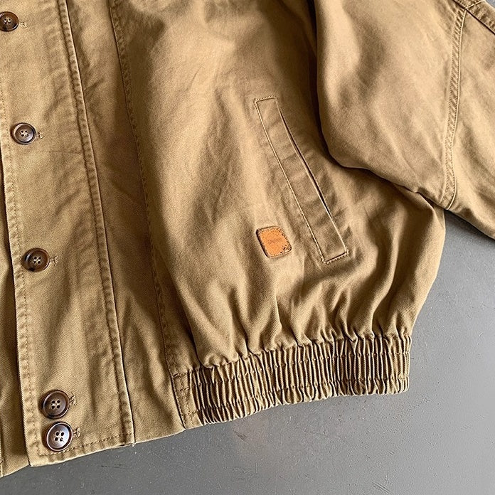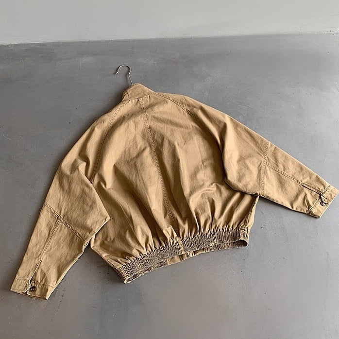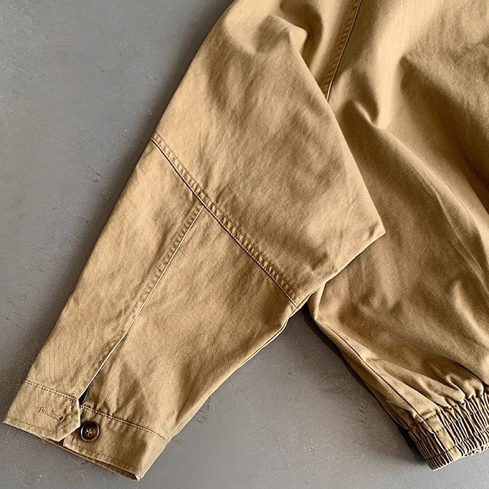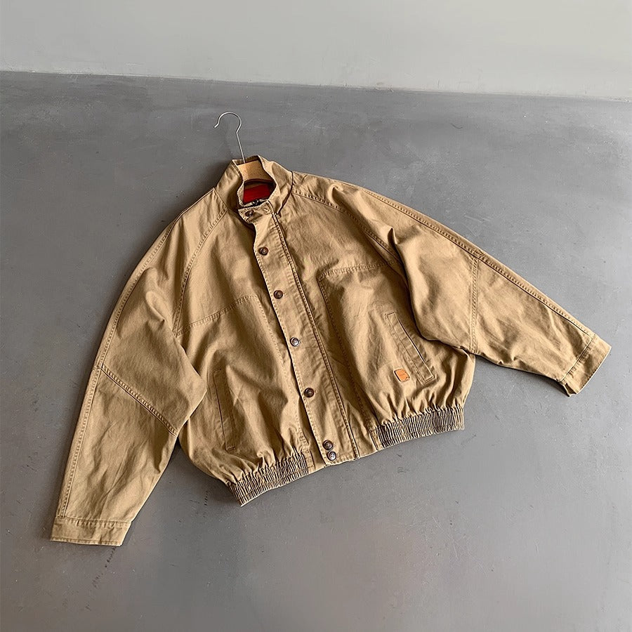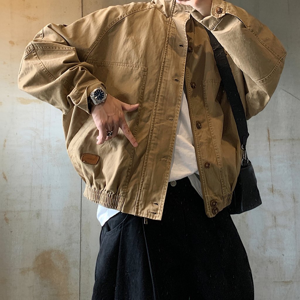 くすんだ色味とボリューム感のあるシルエットが印象的なスタンドボタンブルゾン。