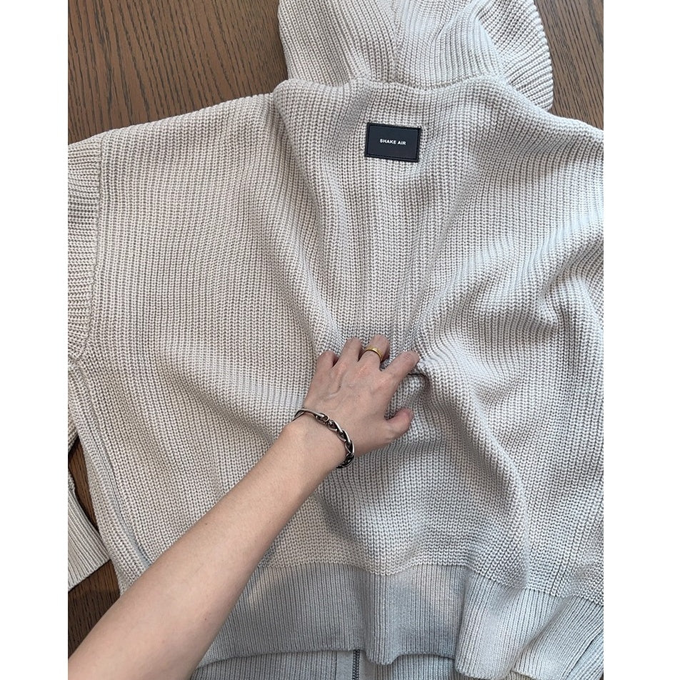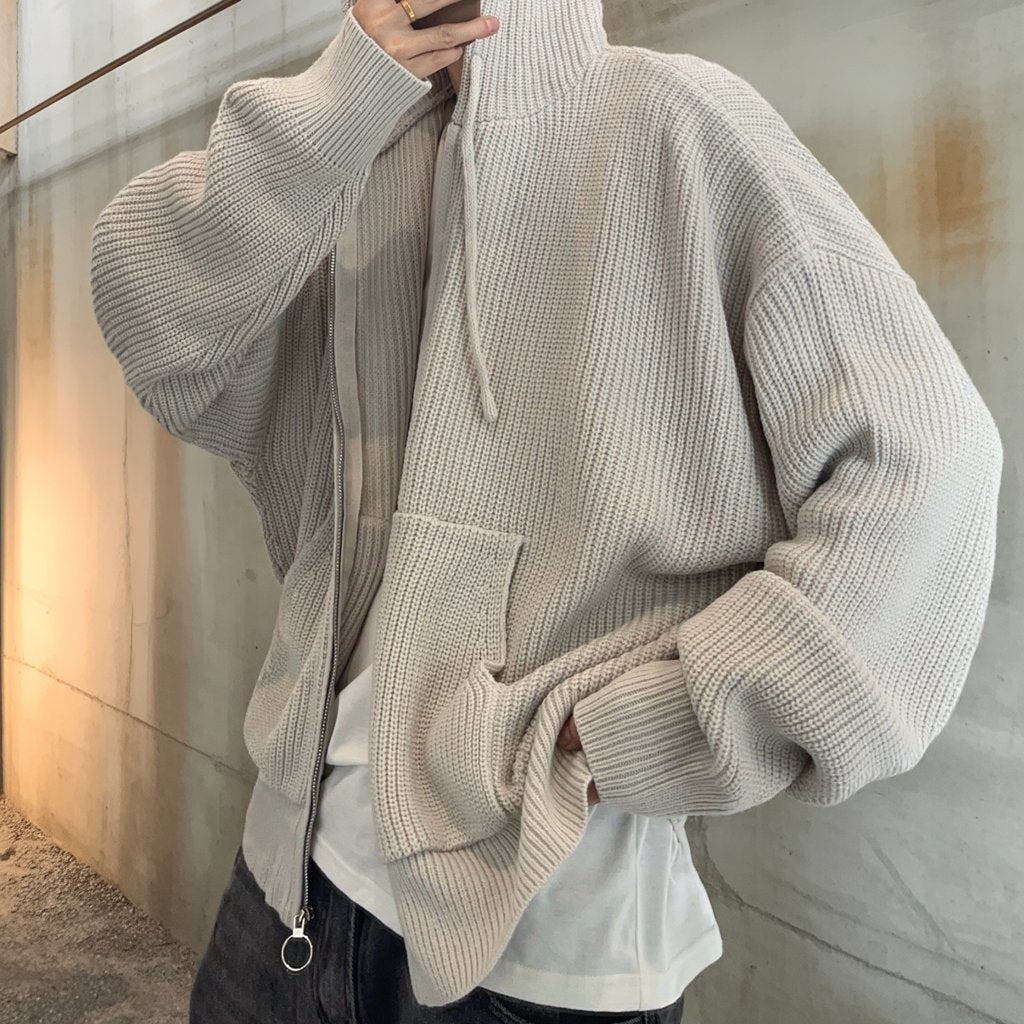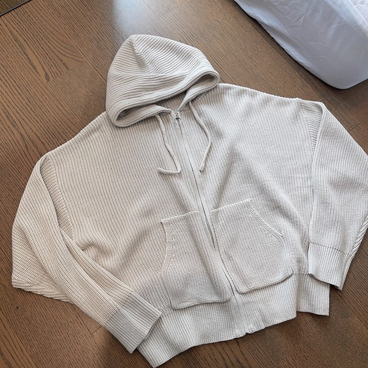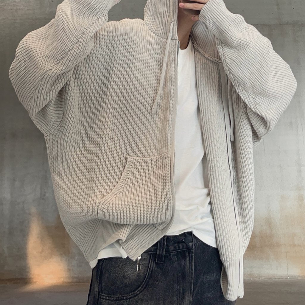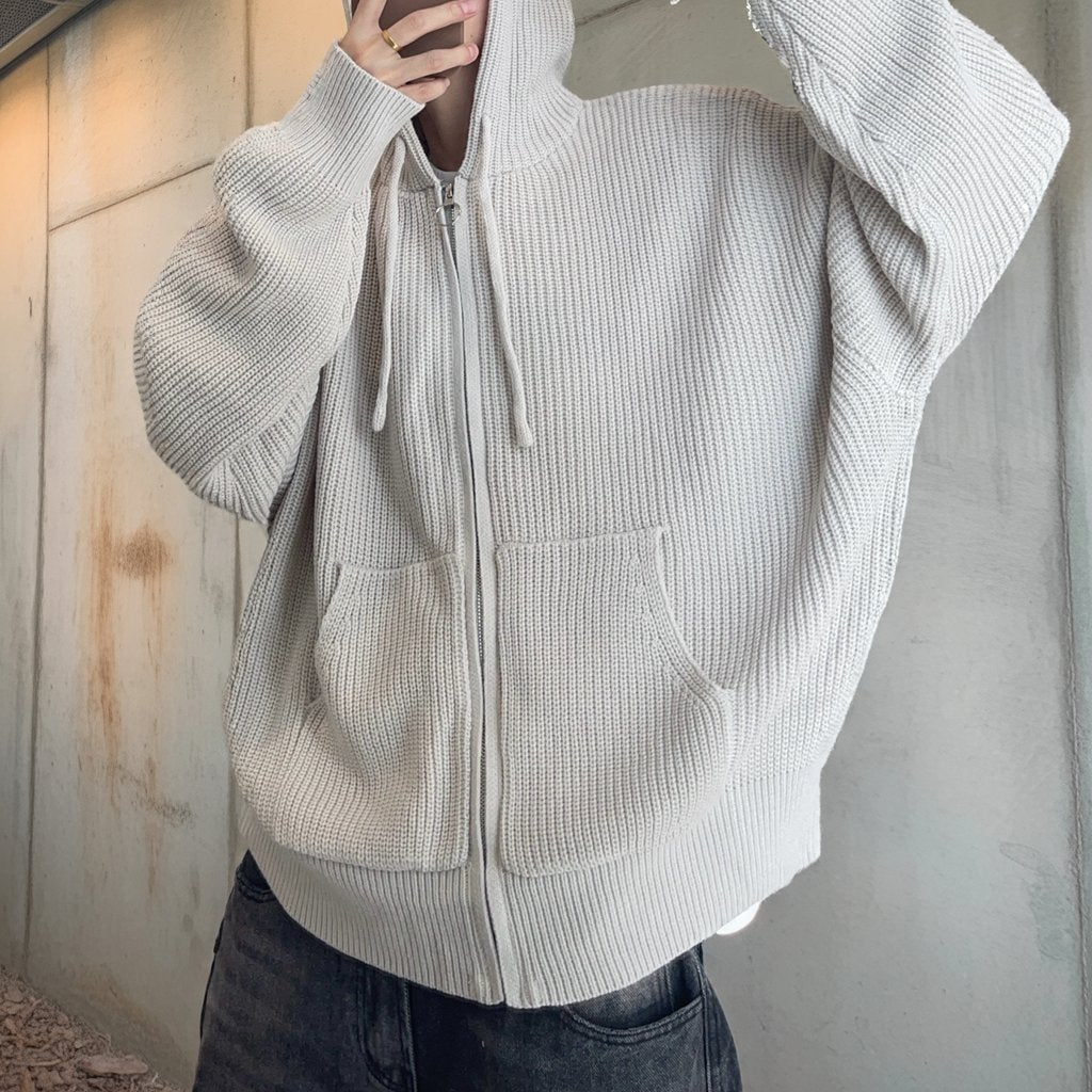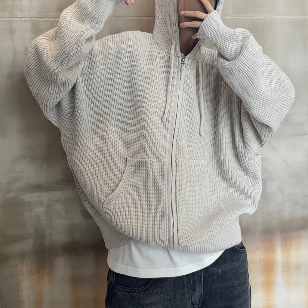 オーバーサイズワッフルニットジップパーカー K0703