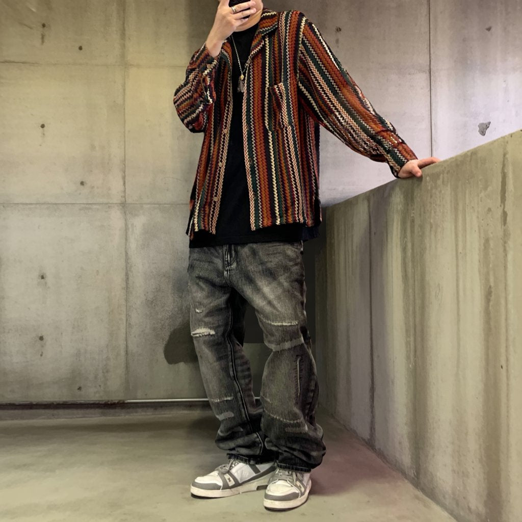 グランジリペアウォッシュワイドデニムパンツ K0706