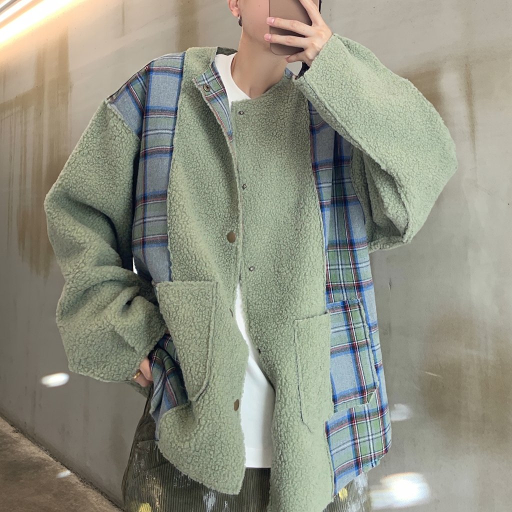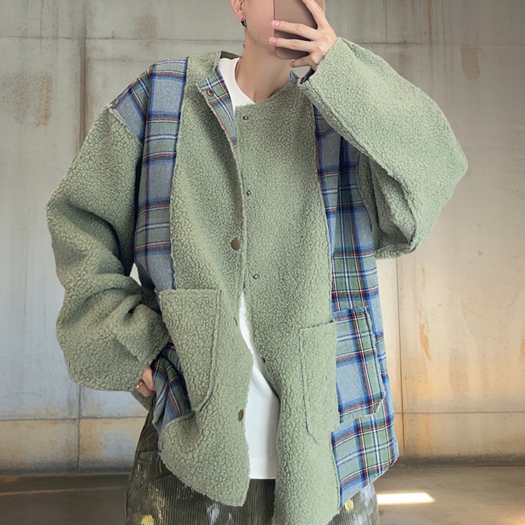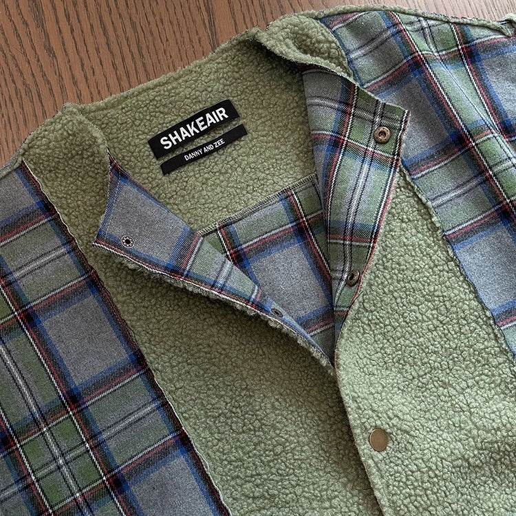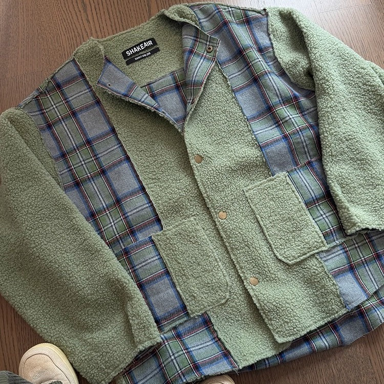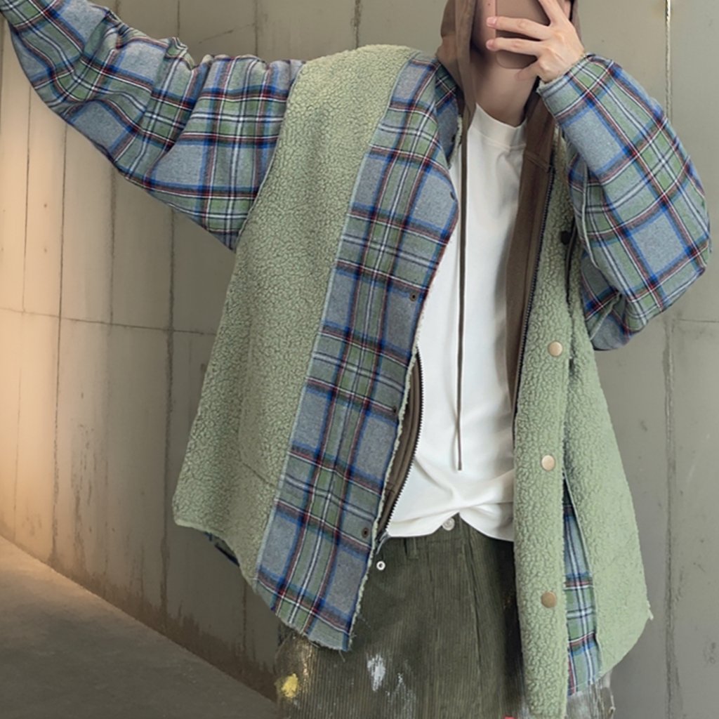 柔らかなボアと起毛チェックを組み合わせたミックスデザインジャケット。