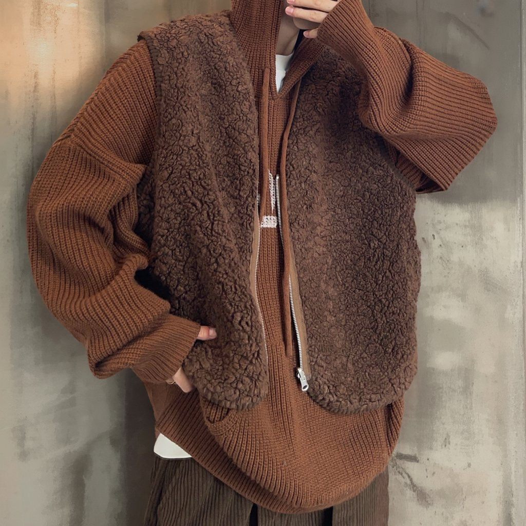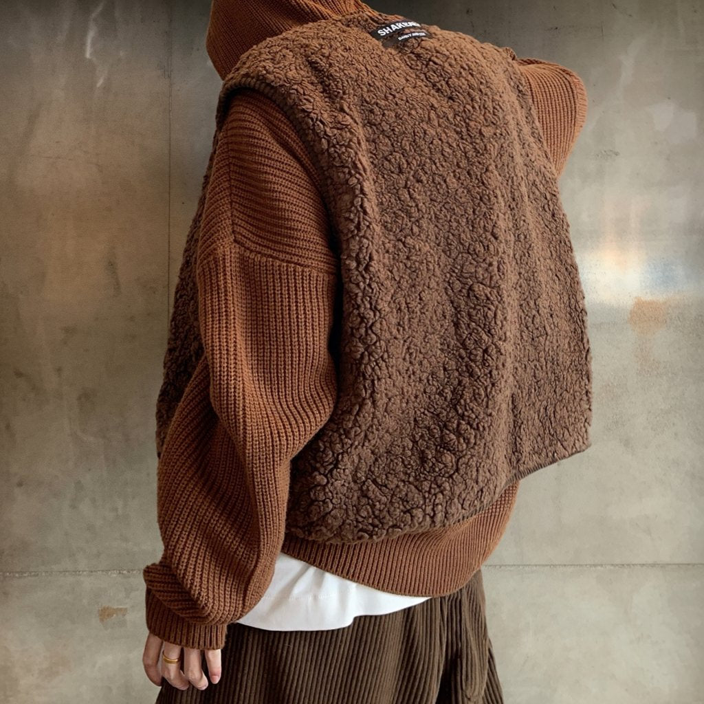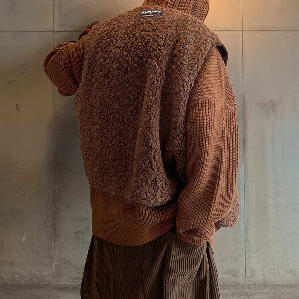 柔らかなブラウンボアとコーデュロイを組み合わせたリバーシブル仕様のジップベスト。