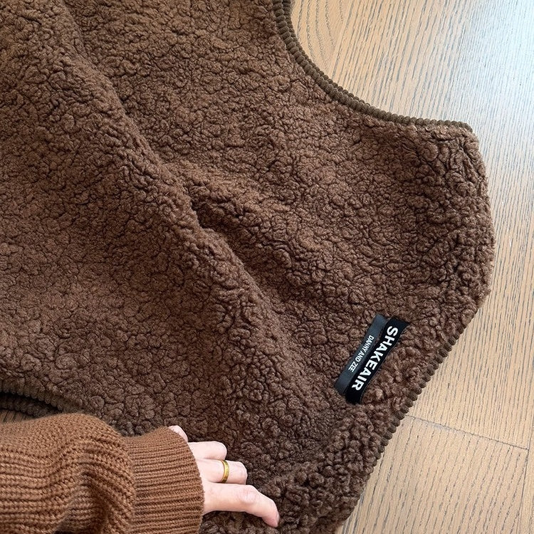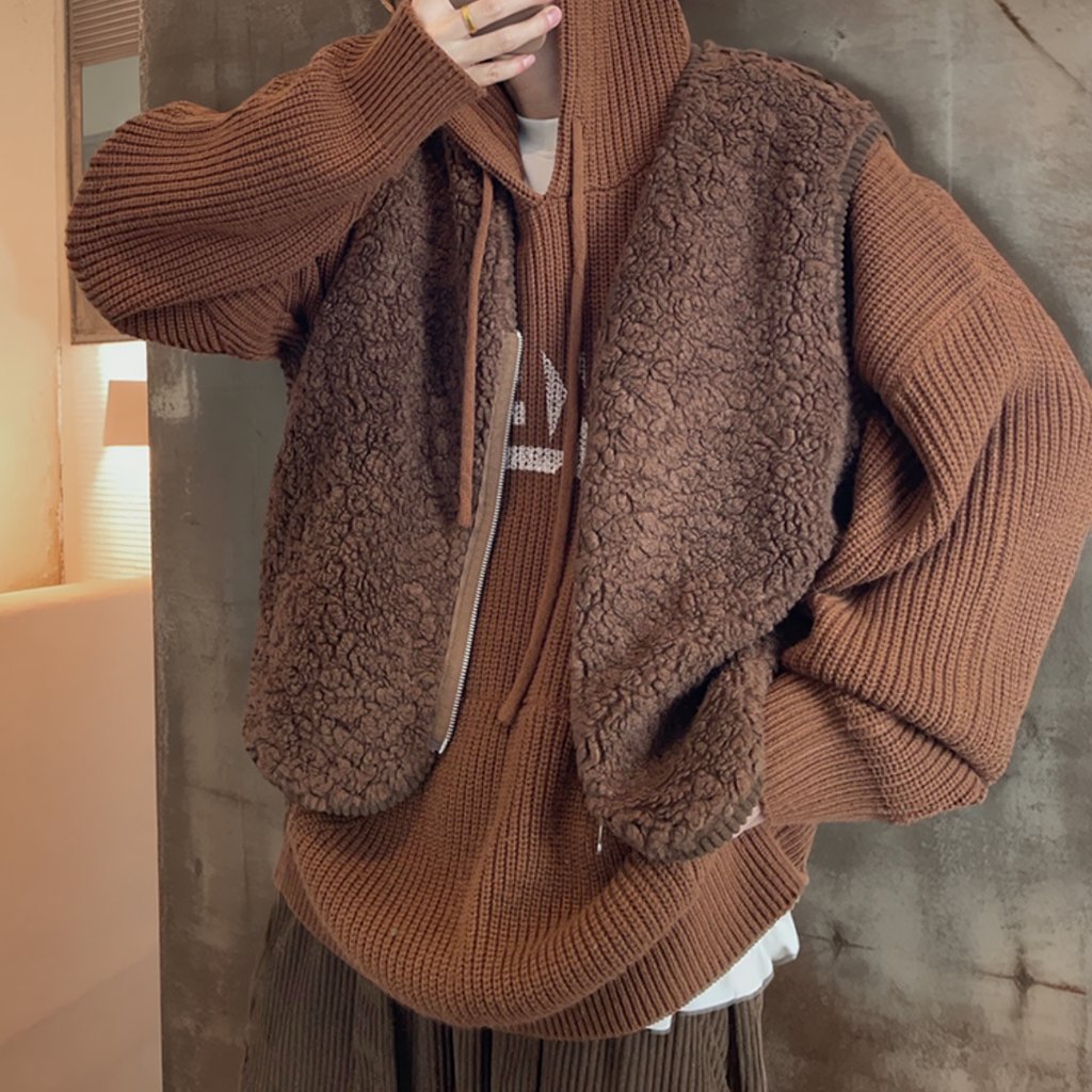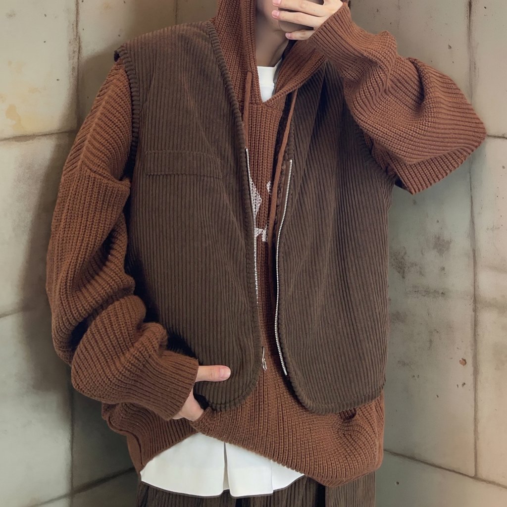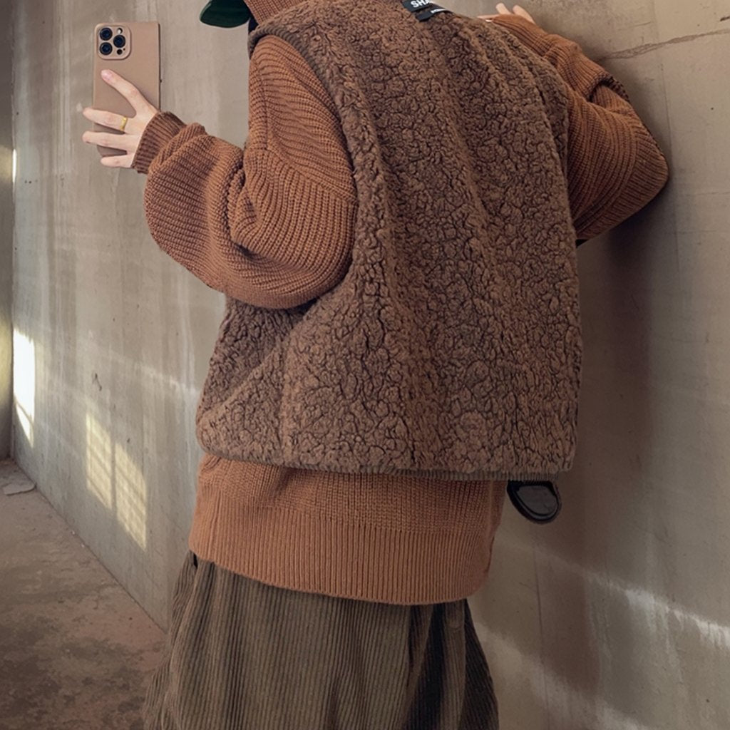 柔らかなブラウンボアとコーデュロイを組み合わせたリバーシブル仕様のジップベスト。