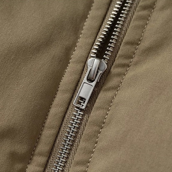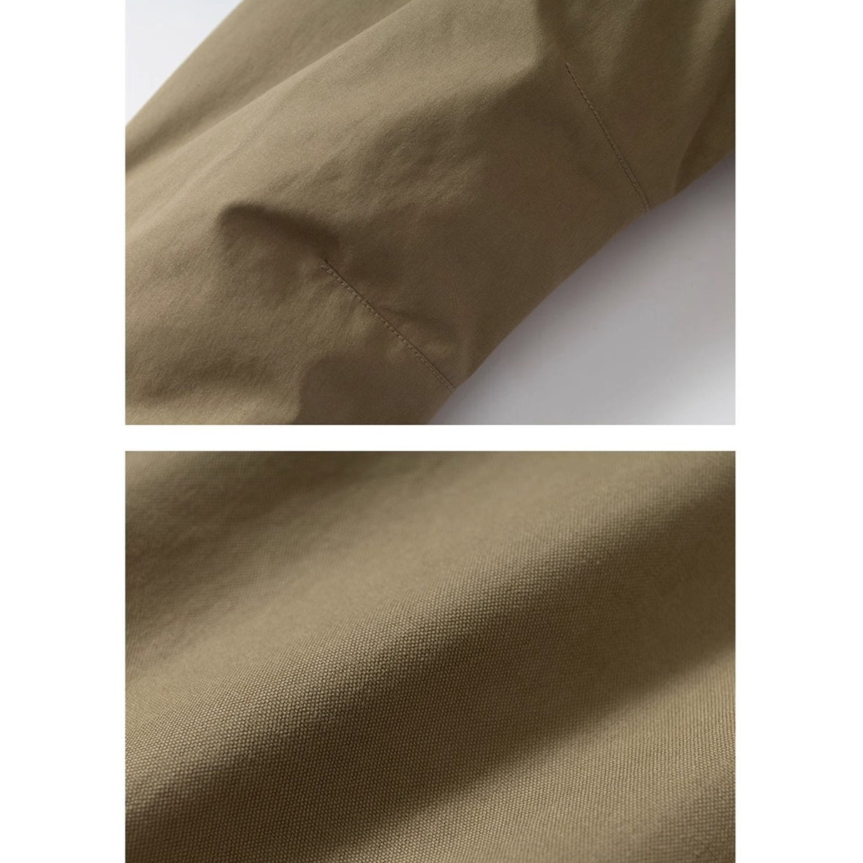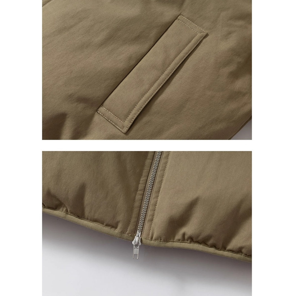 フロントはシンプルなジップ構造で、身頃と袖の切り替えが全体のバランスを整えます。
