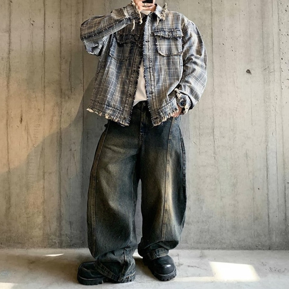 チェック柄をベースに、全体をゆったりと設計したボックス寄りのシルエットが特徴のジャケット。