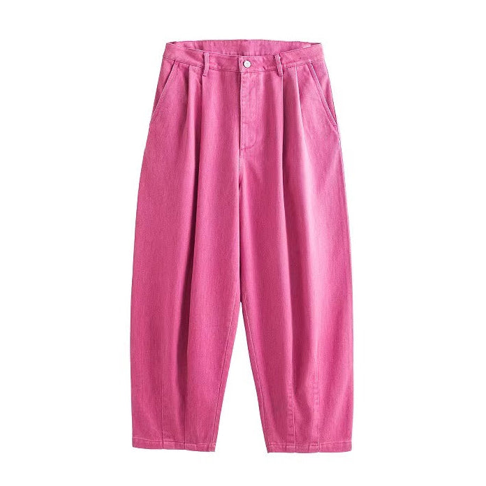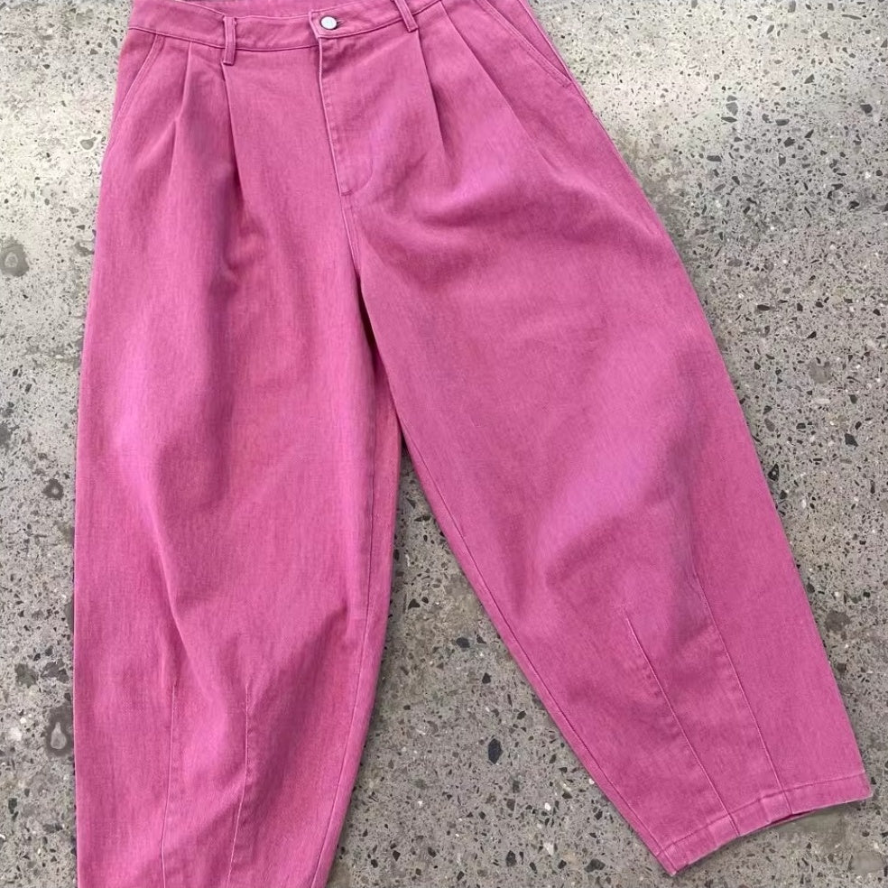 落ち着きのあるピンクトーンが印象的な、タック入りのワイドシルエットパンツ。