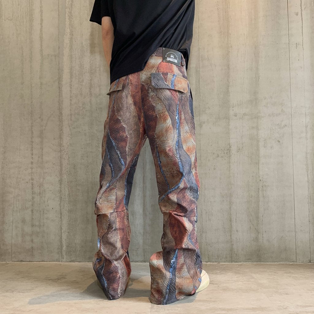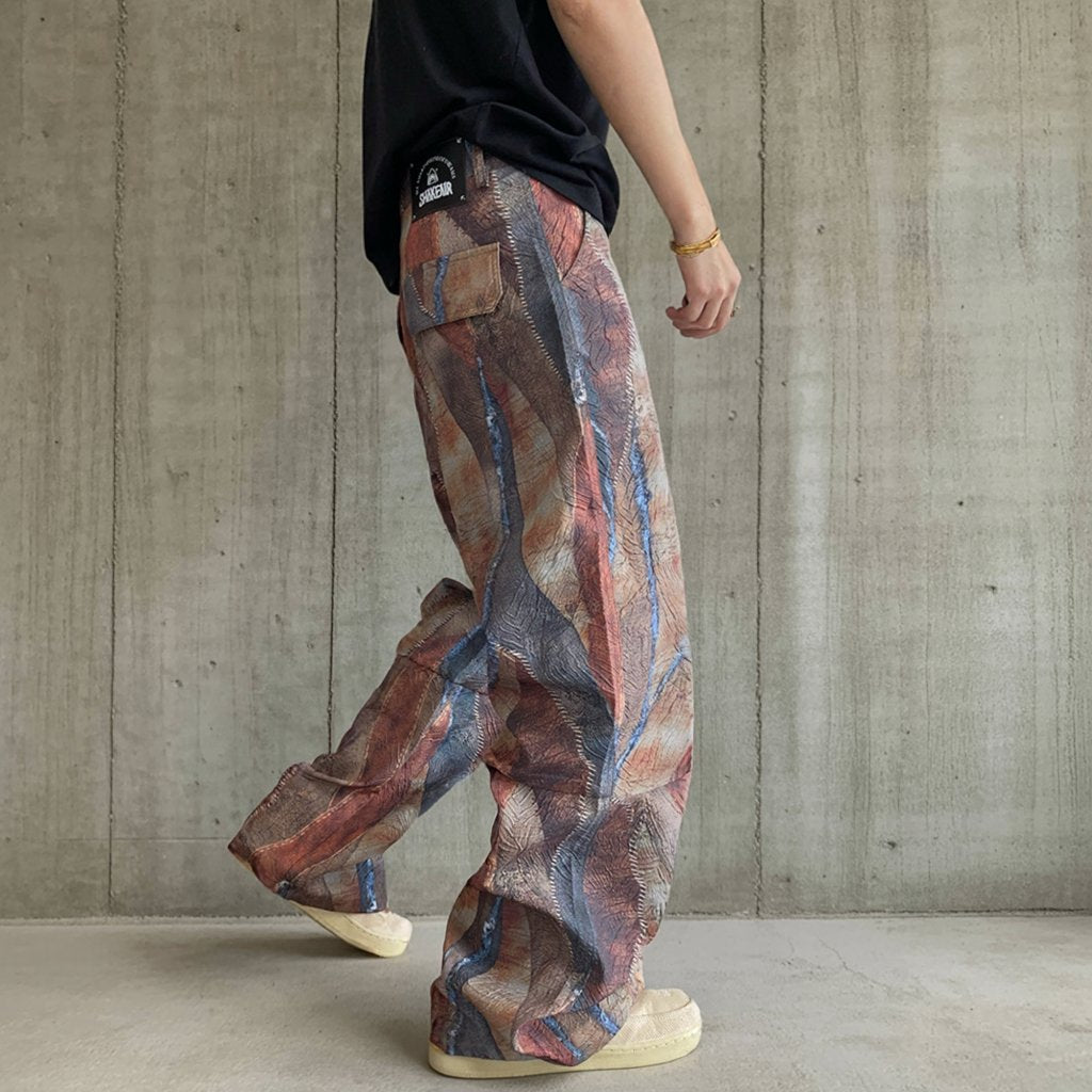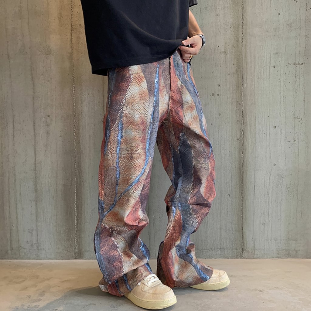 アブストラクトなペイント柄が目を引くワイドシルエットのイージーパンツ。