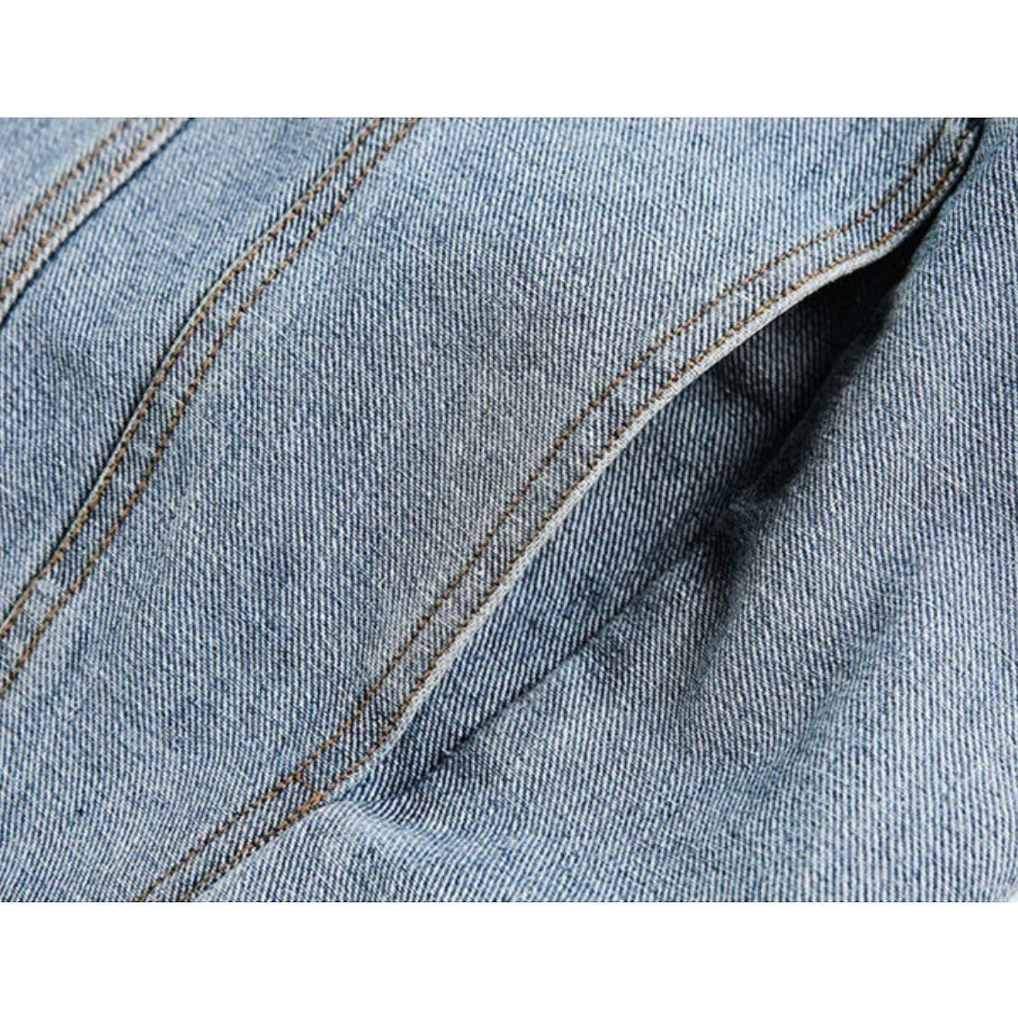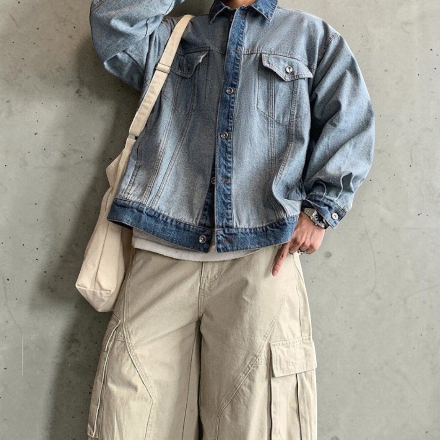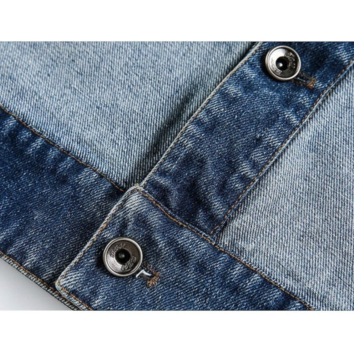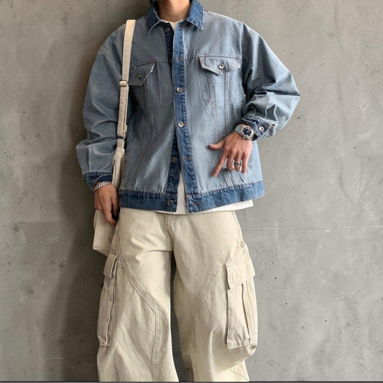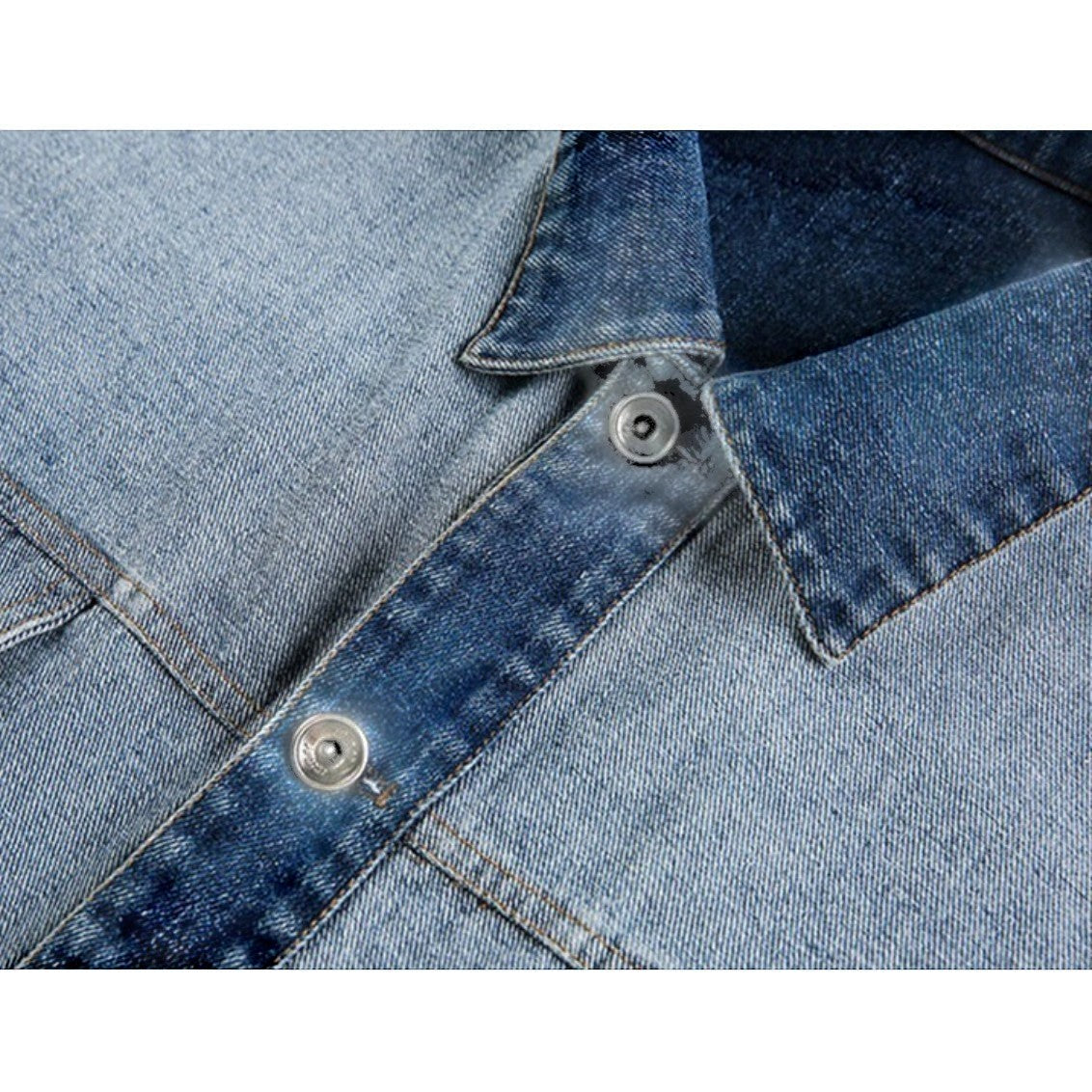ライトブルーとインディゴを切り替えたバイカラーデザインが目を引くデニムジャケット。